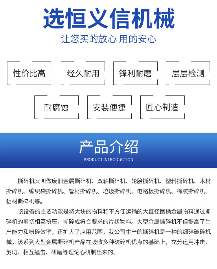 恒义信单双轴撕碎机定制垃圾金属撕碎设备运行平稳撕碎强劲