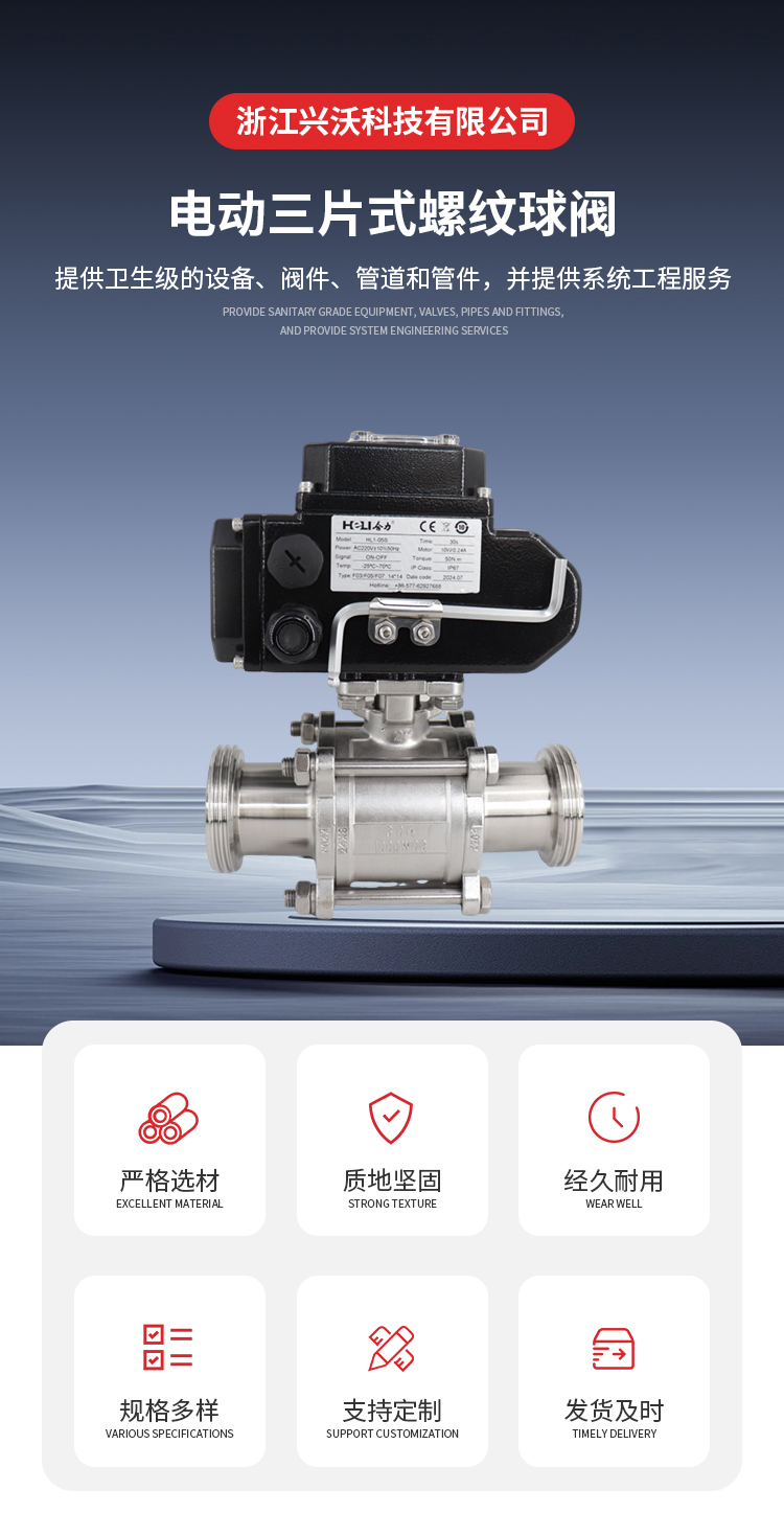 厂家供应兴沃不锈钢电动三片式螺纹球阀性能稳定可靠