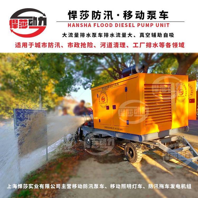 ?悍莎移动自吸式移动泵车主要用于市政排污及防涝工程、农业灌溉,工业排水、排污等 领域。根据类型分可分为固定式、二轮拖车式等。