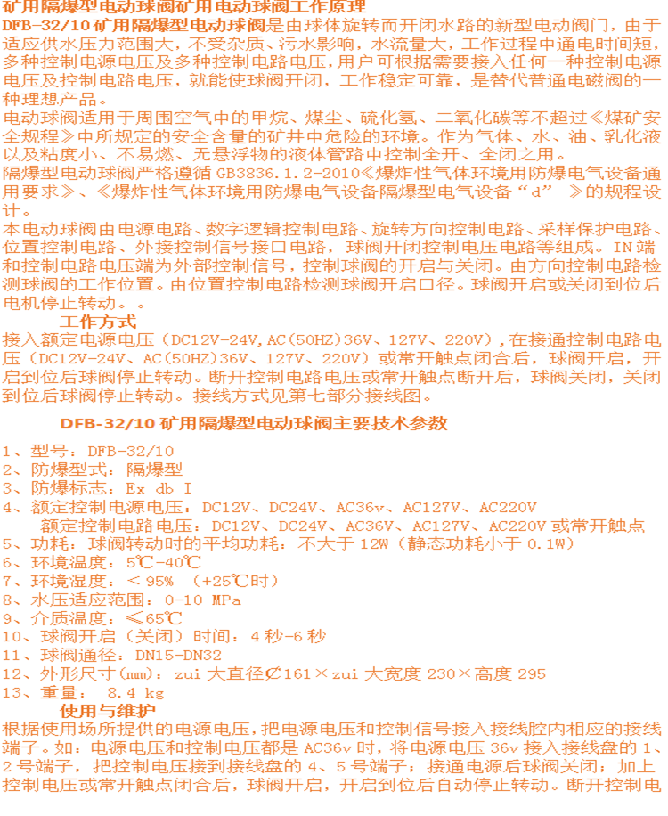 矿用隔爆型电动球阀DFB20/7 洒水降尘小口径不锈钢电磁阀 公称直径 | 2.0cm | ||