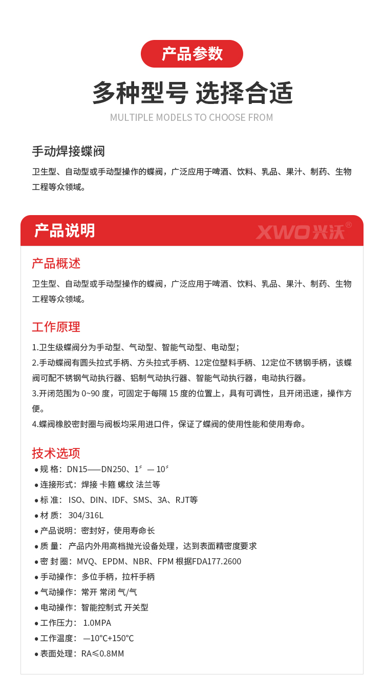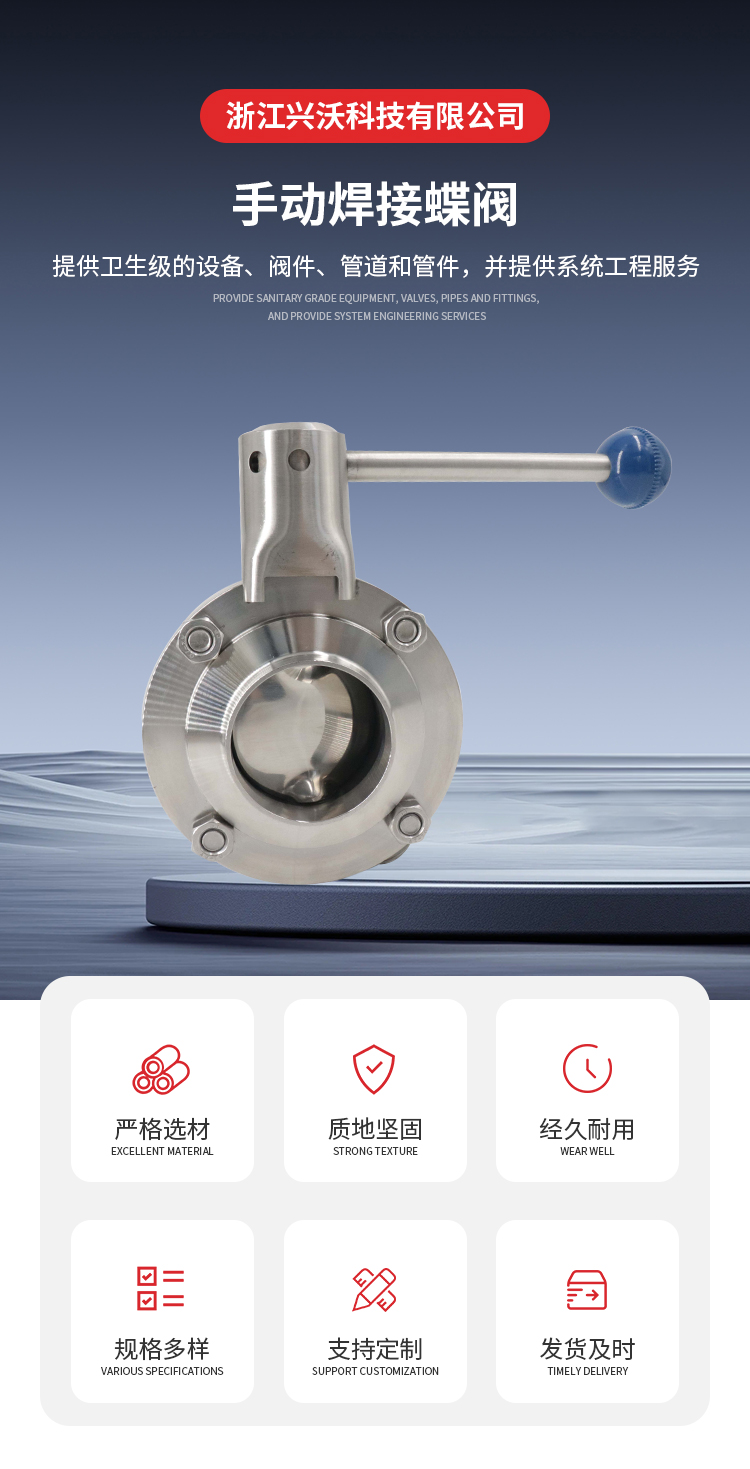 兴沃不锈钢卫生级蝶阀手动焊接气动快装螺纹三片式法兰阀门