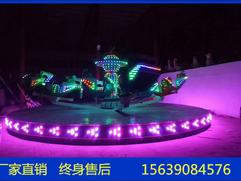 霹雳转盘游乐设备是近两年兴起的新型游乐设备,一直在游乐设备行业独领风搔,因其独特的运行方式,华丽时尚的外观设计,五彩缤纷的色彩,彩灯遍布的背景墙,闪耀醒目的led英文发光字,瞬间成为游乐场里的宠儿,吸引着各个年龄段的人们前去游玩。同时该设备占地较大,投资者需要准备足够的场地,我们设计有3臂9个座舱、3臂12个座舱、4臂12个座舱、4臂16个座舱几种规格.我们可以根据您的场地进行一对一耐心设计,霹雳转盘--设备厂家,同时该设备运行速度和运行高度均在国家检测范围之内,让您放心经营、舒心赚钱。