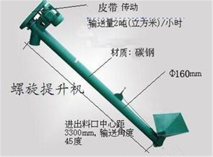 能规则地控制和连续输送粉状和小块状物料,如粮食、饲料、煤粉、水泥、熟料、复混肥、谷类、菜籽等。适用于粮食收购商,饲料厂,化工厂,肥料厂等提升输送物料使用,可输送散落性物料较好、干燥的粒状物和粉状物,其推力大、速度快。本机用于水平、倾斜或短距离输送物料,在输送同时兼具有搅拌功能,可多点进料、出料。适用于输送粮食,化工原料,粉状物,颗粒状物的提升搅拌输送.主要组成部分采用加厚无缝钢管和冷轧式螺旋叶片焊接成型.它具有良好的密封性,无粉尘泄漏。机架采用加厚角铁为支撑架,可方便移动.