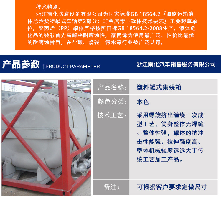 机电之家网厂家浙江南化防腐设备有限公司为您提供浙江南化 塑料罐式集装箱 正圆/椭圆集装箱 螺旋挤出缠绕成型的详细产品价格、产品图片等产品介绍信息,您可以直接联系厂家获取浙江南化 塑料罐式集装箱 正圆/椭圆集装箱 螺旋挤出缠绕成型的具体资料,联系时请说明是在机电之家网看到的。