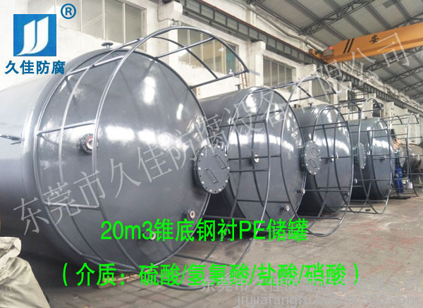 特性:钢衬塑储罐由于其独特的滚塑工艺、产品整体结构和材料优异性能,具有整体性好、强度高、无焊缝、不渗漏、抗冲击、韧性好、重量轻、寿命长、耐酸碱、耐有机溶媒、符合卫生标准、价格低廉、规格品种多等特点。尤其耐腐蚀、长寿命和大规格品种有非常大的优势,是贮存和运输各类化工液体半固体的理想产品。其性能大大超过了传统的玻璃钢、陶瓷、橡胶、焊接塑料等材料制作的防腐储罐。已成为传统防腐储罐的升级换代产品,逐渐成为防腐储罐的**产品。