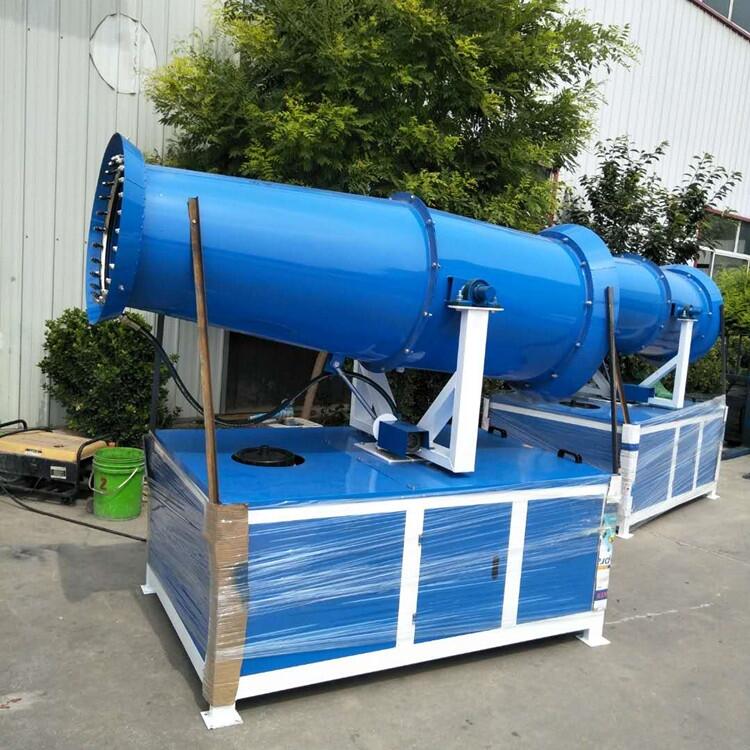 喷雾机又称雾炮机、风送式喷雾机、喷雾除尘装置。 喷雾机是使用增压泵、精细喷嘴将水雾化,借助风筒风力将雾化后的水雾送出较远距离,水雾与空中粉尘颗粒凝结降落,从而达到净化空气、降尘除霾、降温保湿等作用。喷雾筒可遥控水平360°转向,满足大型区域全方位喷洒。喷雾机按外形分为带轮移动式、底座固定式、高塔式、车载式。