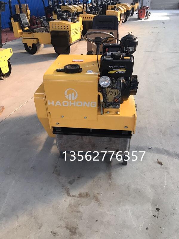 浩鸿生产厂家直销的双轮压路机,产品型号HH-850,前轮轮宽70cm 轮径580cm后轮轮宽60cm轮径430cm,发动机型号常发CF178 6,马力燃油箱6升,液压油5升,水箱15升,爬坡力可达30度,行走速度前进、后退0-5kmh,激振力3吨,激振频率可达到70Hz,自重700公斤,长宽高1900×1100×1300mm。