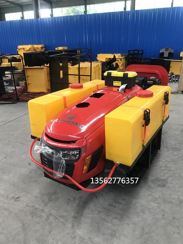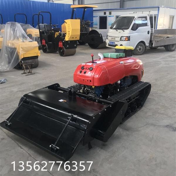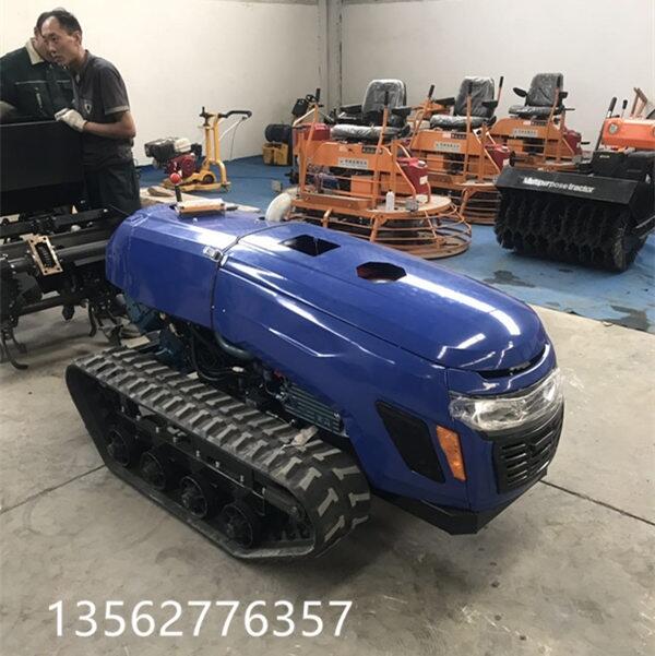 主机技术参数长含旋耕230公分宽主机 92公分高有机罩 85公分变速档位包含3前+1倒X高低档转弯半径 170公分整机速度范围为0.6到 5.6千米每小时动力采用32马力单缸水冷柴油机 爬坡能力能达到30度电启动打火操纵形式采用手动+遥控相结合的方式履带轨间距为 75公分遥控距离能达到 100米地盘离地间隙17公分遥控器电源使用两节5号干电池(3伏)履带为金属履带,特殊需求可定制为橡胶履带接收器电源使用车载电瓶(12伏)组成;旋耕机主要由发动机、减速齿轮、行走机构、松土刀加厚锰钢深度调节机构等组成。发动机提供动力,通过减速齿轮轴连接。工作部件由刀盘和立式松土刀组成,分为两组,由减速齿轮带动。深度调节机构由手柄、链轮链条组成通过机架高度实现松土深度的调节。销售经理:浩鸿黄薇。