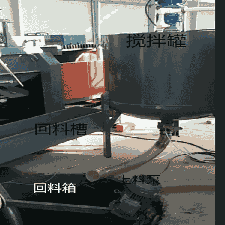搅拌罐为2组,用来循环使用,搅拌电机为4kw,配上料泵一起使用,上料泵为2台,上料电机为2.2kw,
