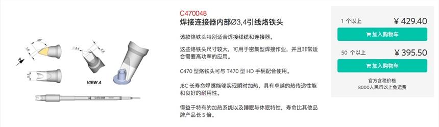 C470 型烙铁头可与 T470 型 HD 手柄配合使用。