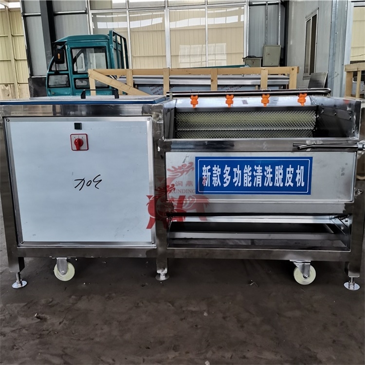 具有外形美观和操作方便,清洗脱皮容积大、效率高,耗能小,可连续清洗,操作简单,使用寿命长等特点,清洗棍为经特殊工艺处理的尼龙线绳轧制材料,脱皮为加硬材料,两者皆经久耐用,耐磨性能相当好。全机采用304不锈钢材质,旋转出料,不锈蚀、清洁卫生。也可在机器底部加装废料收集盘,防止污水皮屑等污染地面。