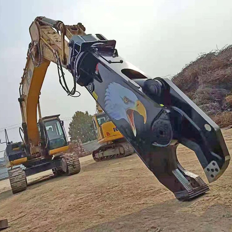 采用鹰嘴式剪切,更加方便快捷,抓取物料块,开口也大,能够轻松撕碎、剪断不同的废铁、废钢、废旧金属回收等。