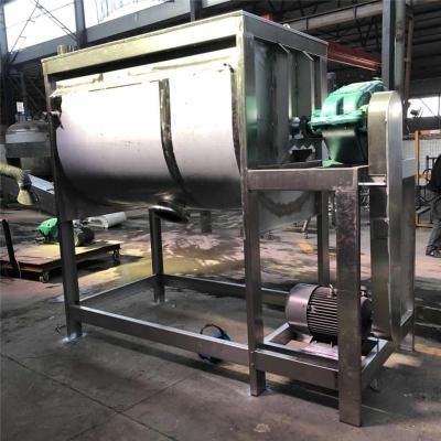 卧式螺带混料机与其他混料机相比较具有混合时间短,适应性广不破坏混合物料,易于清理清扫等优点,对物料不会压馈和磨碎,对粗料、细料的混合也有良好的适应性。卧式螺带混料机在不破坏混合物的状态下,在机体内产生横向交错对流、掺混、扩散等复合运动,使物料在短时间内达到理想混合的效果。