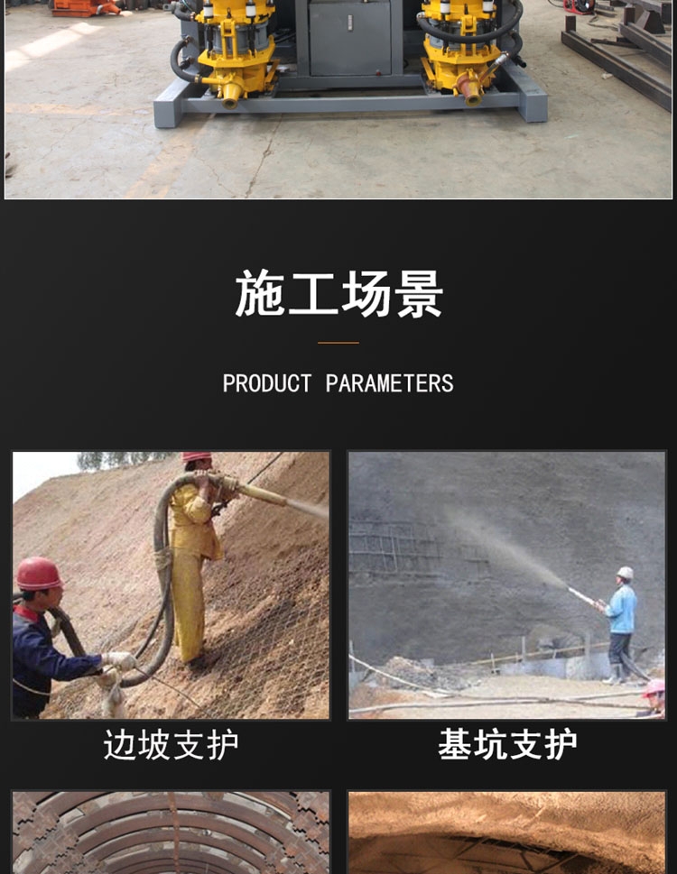 【句子】YLDP-2一拖二干喷机组合不间断上料喷浆。