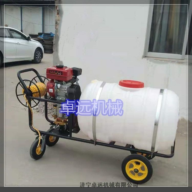 高压动力打药车特点:启动方便,结构紧凑,运输便利,射程远,雾化效果好,作业范围大,特有回液搅拌器,