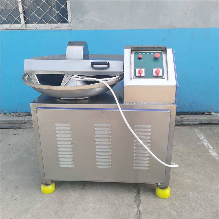 斩拌机是一种利用合金斩刀在电机带动下高速旋转的斩切作用,将肉、脂肪等原料肉斩切成馅状或泥状的斩切、搅拌设备。同时也可将水、调味品等原料、辅料一起混合搅拌成均匀的乳化物。对于蔬菜(韭菜、粉条、萝卜、青椒、土豆等)同样具有良好的斩拌效果。