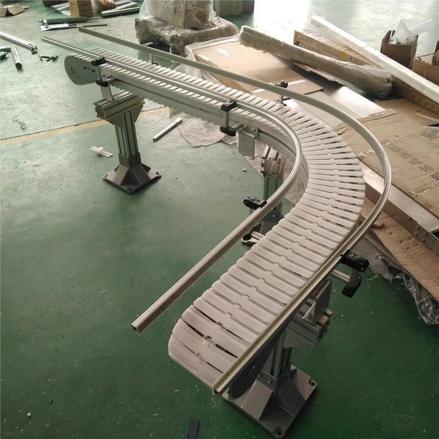 U型转弯链板输送机链板有穿轴连接式链板和平顶链板,平顶链板材质有2Gr13和304不锈钢两种材质,这两种材质的链板都有着耐磨和韧性高的特性。工业中多用2Gr13材质的链板而食品行业和高档包装行业必须使用304不锈钢链板,平顶链板分直行链板和转弯链板两种型号。U型转弯链板输送机链板节距是38.1mm,宽度尺寸有86.2mm、101.6mm、127mm、152.4mm、190.5mm。平顶链板在饮用水灌装和食用油灌装生产线上是必须使用的输送链板。