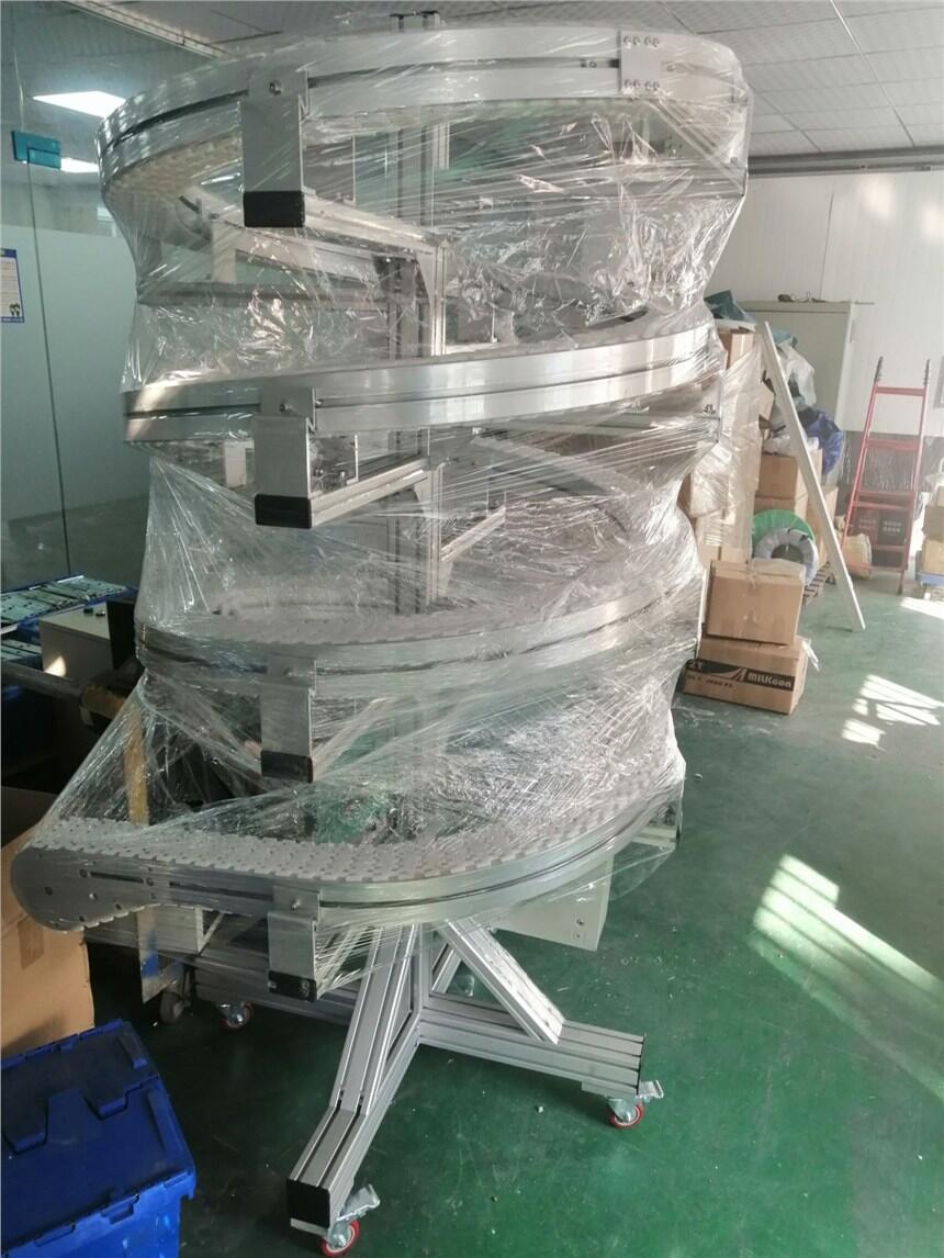 柔性链板输送机是一种轻型的组合立体输送系统,采用铝合金框架,塑钢输送链。具有灵巧、轻便、美观,标准化的结构,模块化设计,安装快速,随意、系统稳定、紧凑、安静、无污染。广泛用于卫生要求高,场地范围小,洁净,自动化程度高的生产线配套使用。具有转弯半径小,爬坡强等优点。对于药厂、化妆品厂、食品厂、轴承厂等行业,是自动化连线理想的便捷产品。此输送系统可大可小,伸缩自如、操作简便,可制成托、推、挂、夹各种输送方式,组成集料、分流、分检、合流各种功能,加装各种气动、电动、机动自控装置,并根据用户不同的需要,形成各种形式的生产流水线。