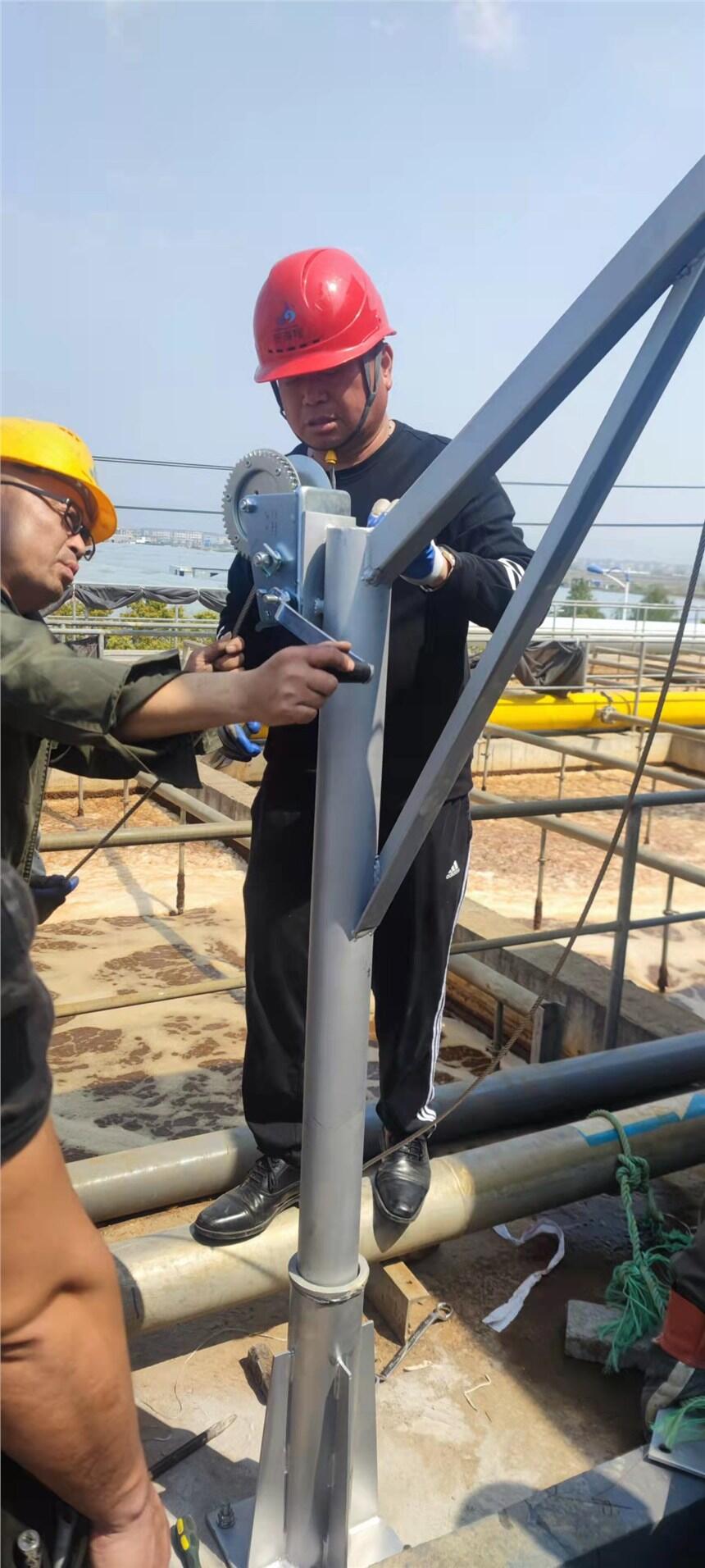 (11)安装潜水搅拌机根据潜水搅拌器所在水池的尺寸、安装条件及设备性能要求复核搅拌器的具体位置,确定搅拌器的功率、叶轮直径、转速、安装高度、安装角度等。