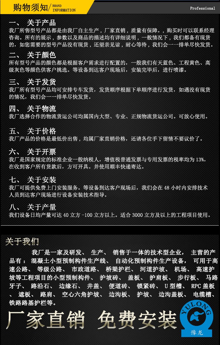 小型预制构件生产线 水沟盖板预制生产线 小型预制构件预制方案 整套设运转情况,整机是否噪音大、振动频率稳定、安装维修简便、占地面积、安装布局等等。这些指标直接影响生产出来的产品质量,生产的效益和设备寿命,还要多了解老客户使用过程中的具体细节问题。