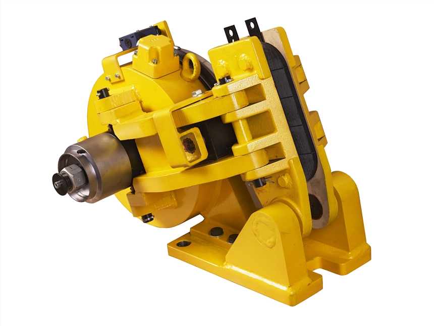 制动器一般有5大机构:主起升,副起升、大车、主小车、副小车机构。电机安装在高速轴上,卷筒安装在低速轴上,高速轴和低速轴通过减速器连接在一起。传统的起升机构制动器设在高速轴上制动器。在这种情况下,如果高速轴和制动轮