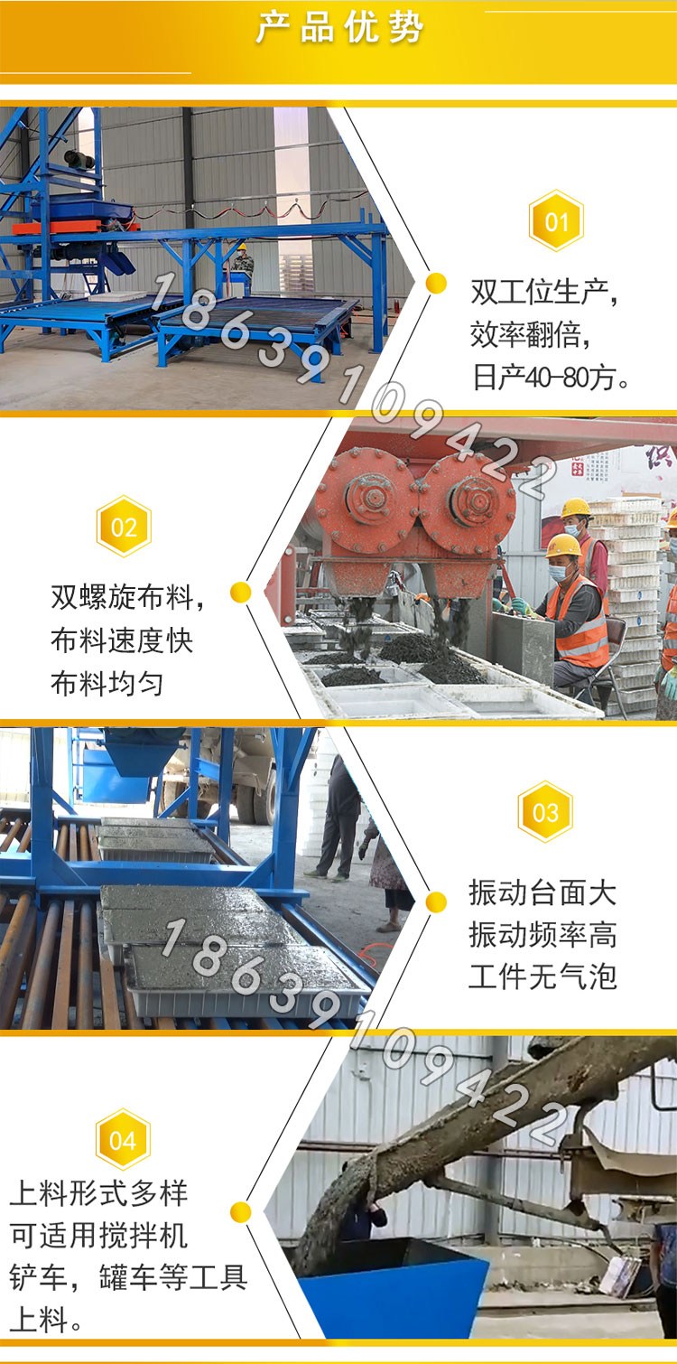 考虑到预制件设备某些部件,经常处于混凝土摩擦的磨损状态下,部件的磨损较为严重,因此在设计时对相关的易损部件进行了的处理,还特别配备了清洗踏步,方便使用后进行清洗,从而延长了设备的使用寿命。 小型预制构件生产线 小型预制块振捣设备 全自动小构件生产线设备。