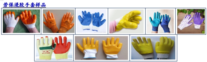1) 劳保浸胶手套生产线又叫手套浸胶机,是一种制作乳胶手套、浸胶手套的设备,根据用途,手套浸胶机有分半浸胶手套机和全浸胶手套机。