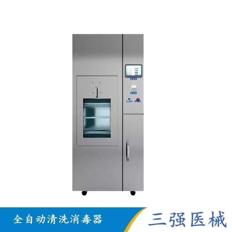 由清洗消毒舱、机架、机壳、喷淋灌流系统、清洗车、加热系统、干燥系统、电磁阀、循环泵、蠕动泵、风机、控制系统、触摸屏、打印机和管路组成。