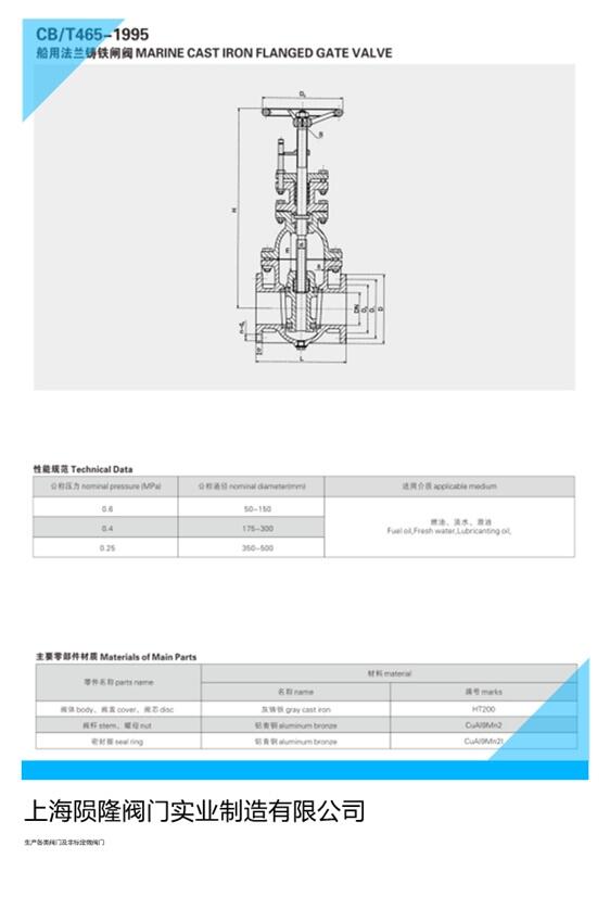 船用CB/T465-1995法兰铸铁闸阀陨隆阀门