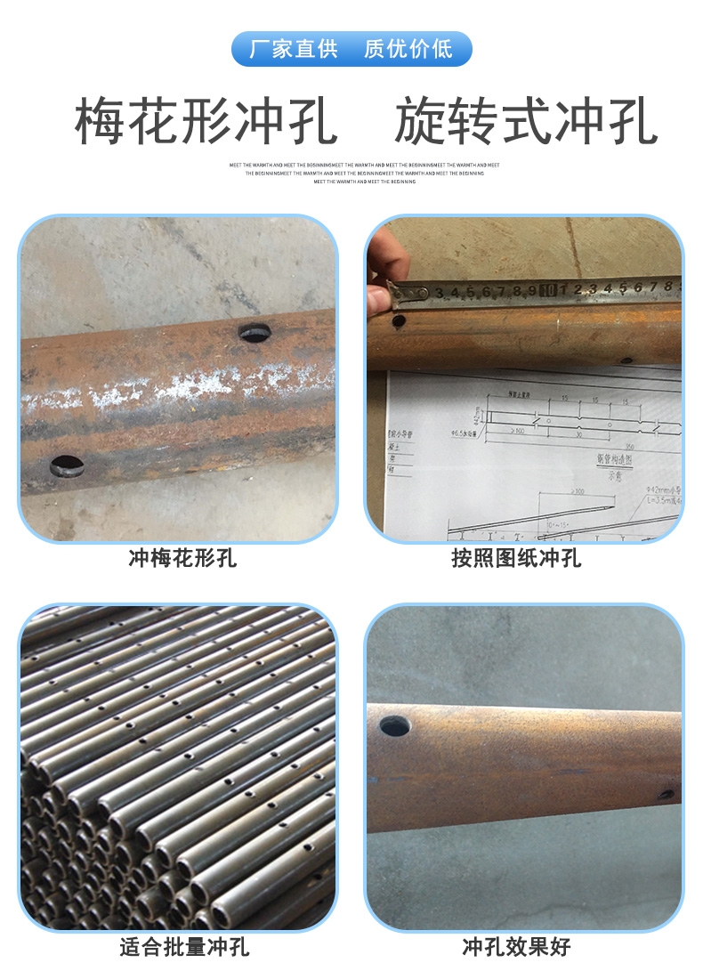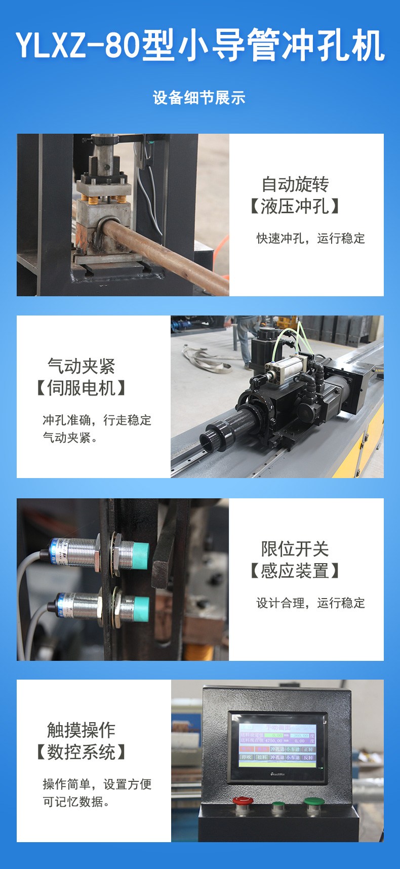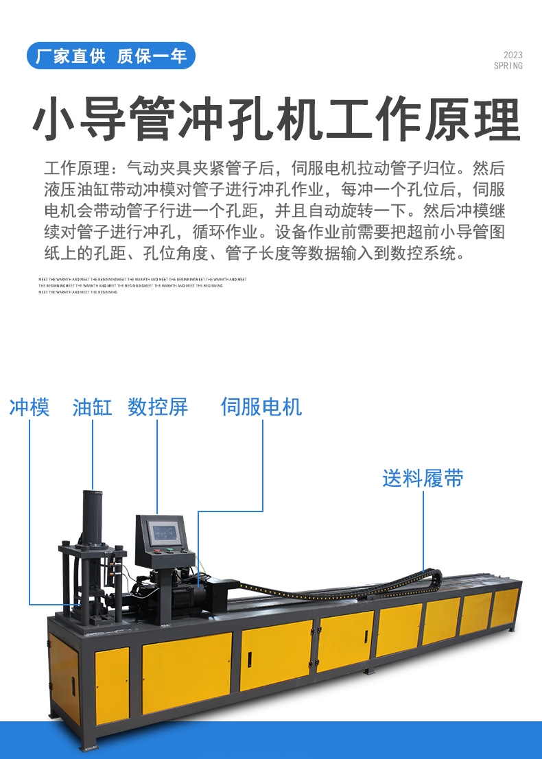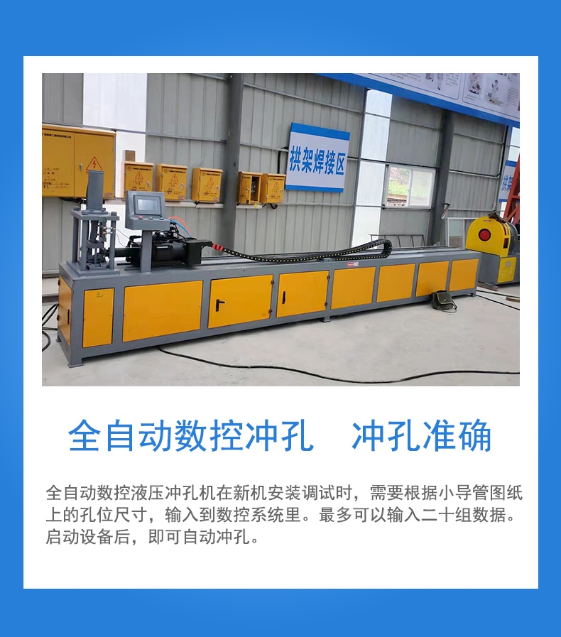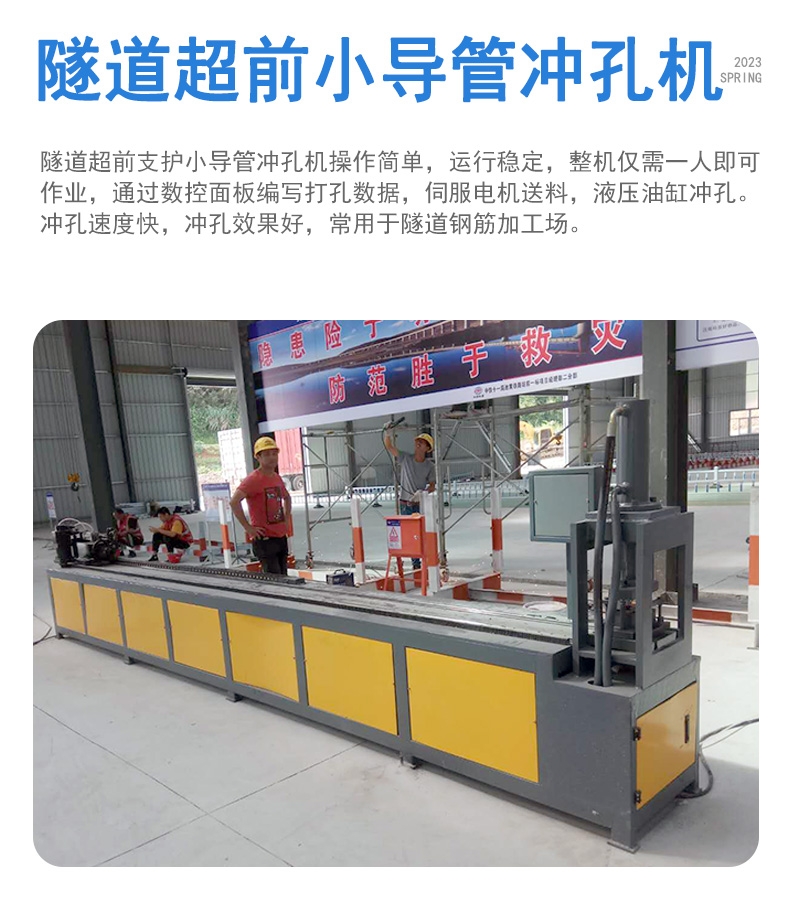 小导管打孔机冲孔动力机构:是由 厂家行程冲孔油缸、电动机、油泵、电子阀等构成。 注浆小导管生产线 小导管割孔机 小导管冲孔机厂家报价