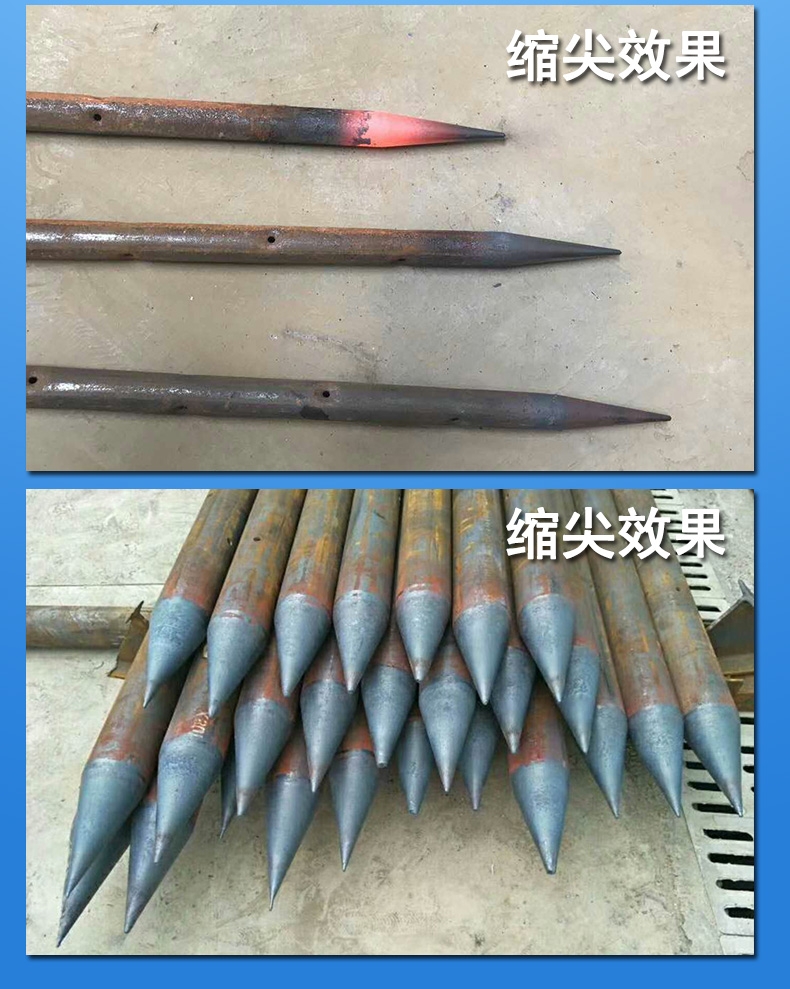 浆液进入岩(土)体的空隙凝结固化后起防水作用。 水泥—水玻璃双液浆的固结时间一般为4小时左右,单液水泥浆的固结时间一般为8小时左右。在甬金高速公路白峰岭金华端施工中,右洞为水泥—水玻璃双液注浆,左洞为水泥浆单液注浆,在地质条件、施工操作工艺基本相同的情况下证明:双液注浆的止水优于单液注浆。本文就水泥—水玻璃双液注浆的施工工艺予以重点探讨。 注浆小导管生产线 小导管割孔机 小导管冲孔机厂家报价