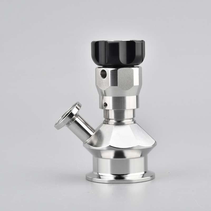 无菌取样阀的结构主要包括密封胶套、储样腔、取样口、不锈钢顶针、弹簧、顶针套管、手动旋柄(自动无菌取样阀与手动的差别在于是否使用气动装置,其基本原理相同,正常情况无菌取样阀都配有合适尺寸的取样口封头)等。其基本工作原理为当处于关闭状态时,依靠弹簧张力或其它压力推动顶针,由顶针将密封胶头压紧在罐壁的开孔处,达到密封效果。如果需要取样时,从其中一个取样口通入蒸汽或其它杀菌介质,将整个储样腔内充满蒸汽并从另一个取样口导出,经过一定时间的作用后使储样腔和取样口处于无菌状态。然后通过拧动旋柄,收缩弹簧,放松顶针,使得密封胶头从罐壁上的开孔处脱离,从而使样品从罐内经过样品室流出,并从取样口收集。取样完成后,拧动旋柄,放松弹簧,通过顶针再次将密封胶头压紧在罐壁的开孔处。
