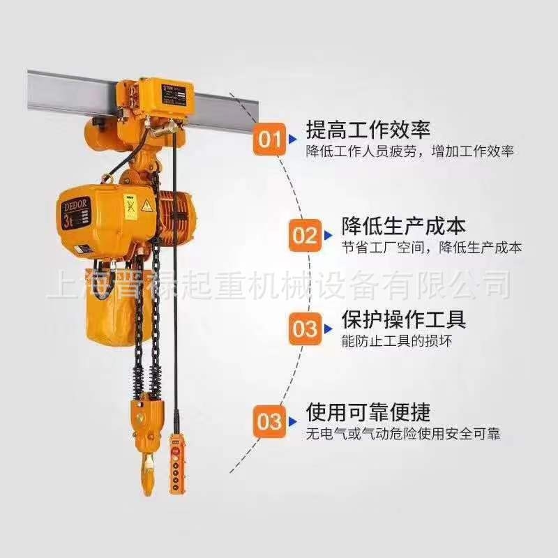 环链电动葫芦的特点:性能结构先进,体积小,重量轻,性能可靠,操作方便,适用范围广,对起吊重物、装卸工作、维修设备、吊运货物非常方便,它还可以安装在悬空工字钢、曲线轨道、旋臂吊导轨及固定吊点上吊运重物。