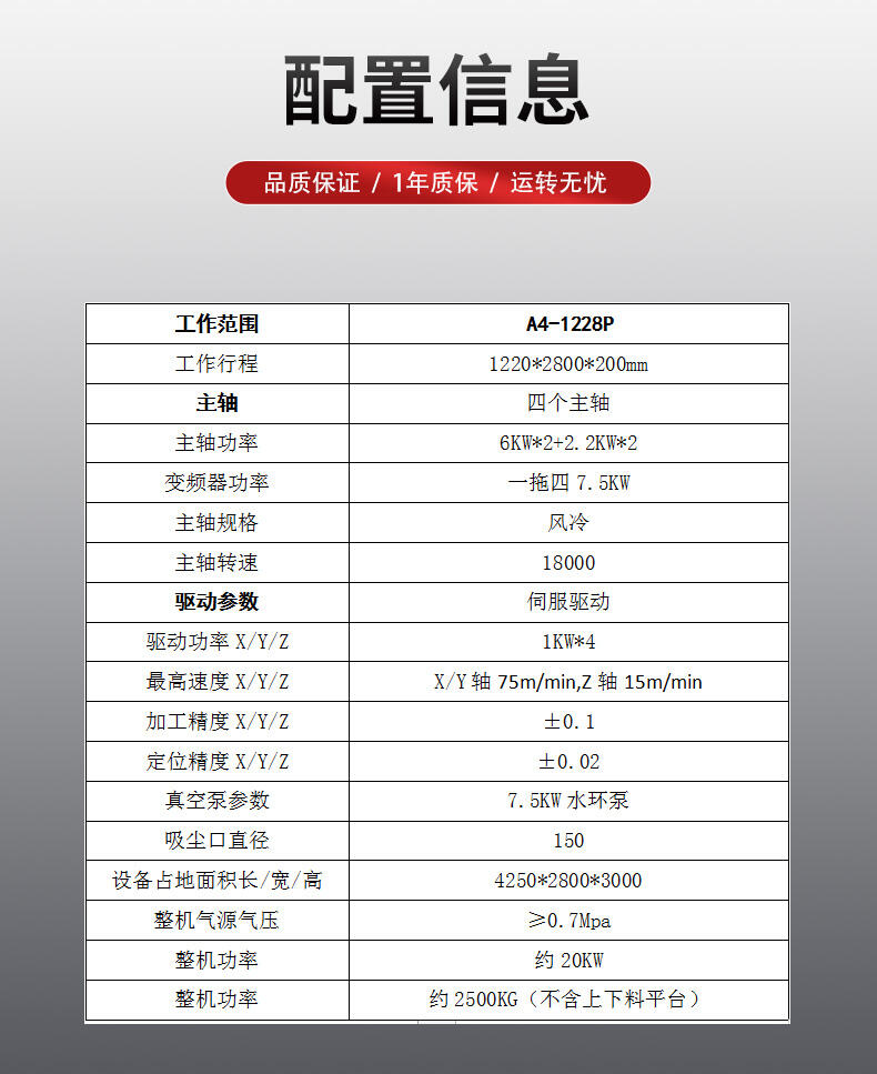 快克数控A4-1228P下料四头木工开料机
