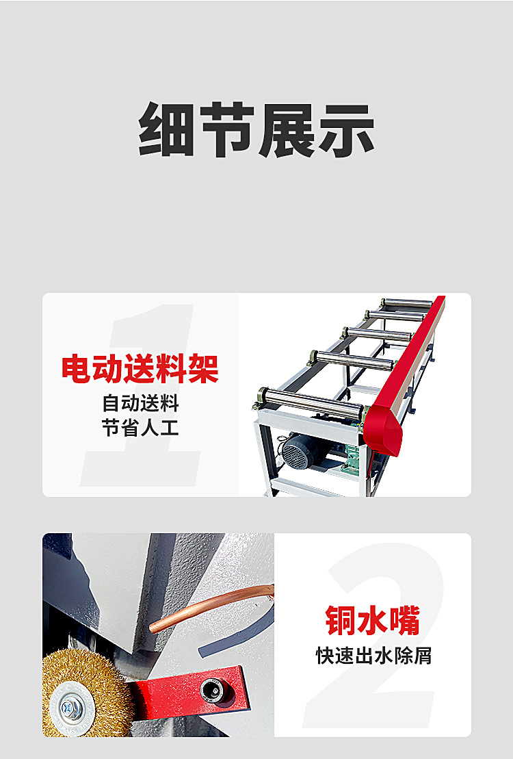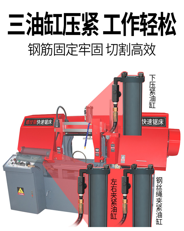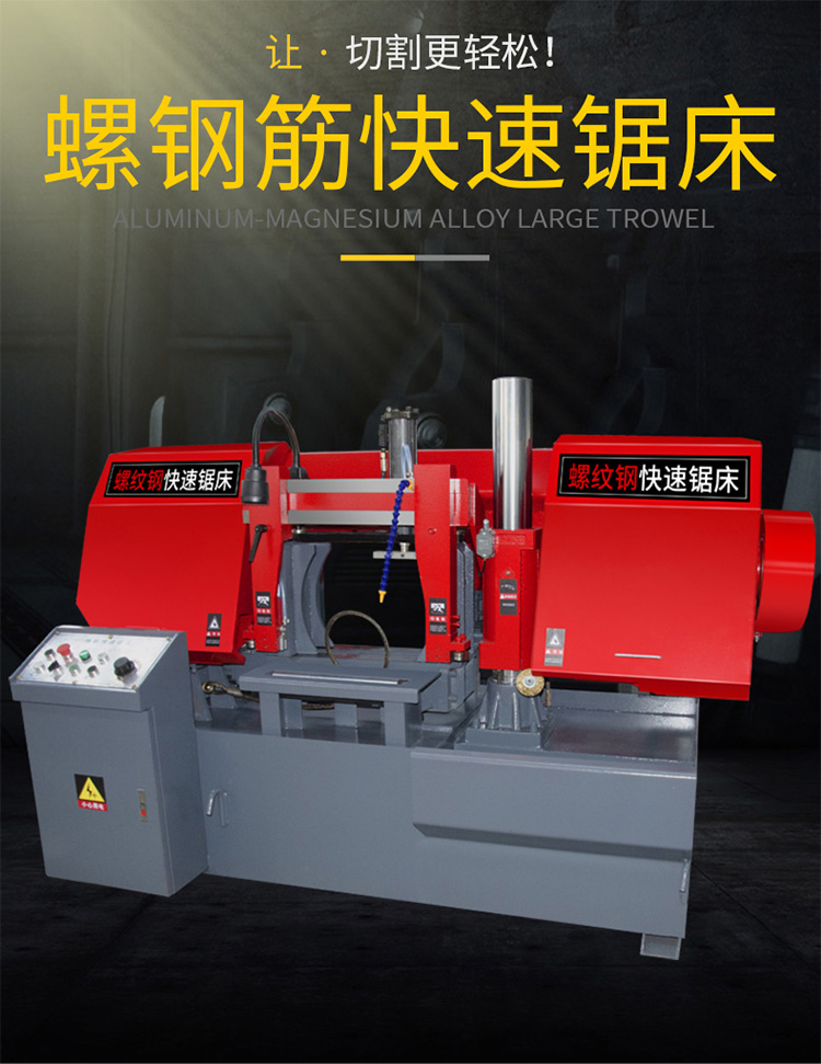 铸铁、铜、铝件不加切写削液,其它均需加写削液。切削途中锯条断裂,调换新锯条后,工件必须翻身重新锯,锯弓放 下时应,不得冲击。切削中操作者严禁离开岗位,严禁带手套操作。每班下班时,必须切断电源,打开防护罩 ,被带入锯轮周围的切屑,做好日常及周围清扫工作。 钢筋专用带锯床 数控液压切整捆钢筋锯床 半自动方钢锯床切割机,钢筋专用带锯床 数控液压切整捆钢筋锯床 半自动方钢锯床切割机。