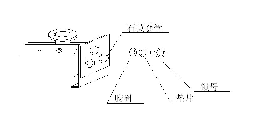 3、如果想更换石英套管,请打开侧盖,用扳手拆下消毒器两侧的锁母、垫片、胶圈后即可更换。更换后需按照拆装顺序依次安装胶圈、垫片、锁母。