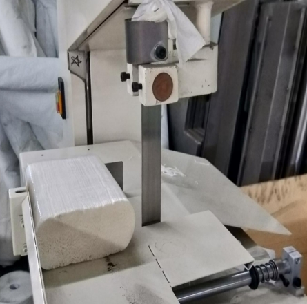 分切系统:由锯带、带轮、工作板组成,工作板上有产品大小调整装置,使产品达到可调目的。