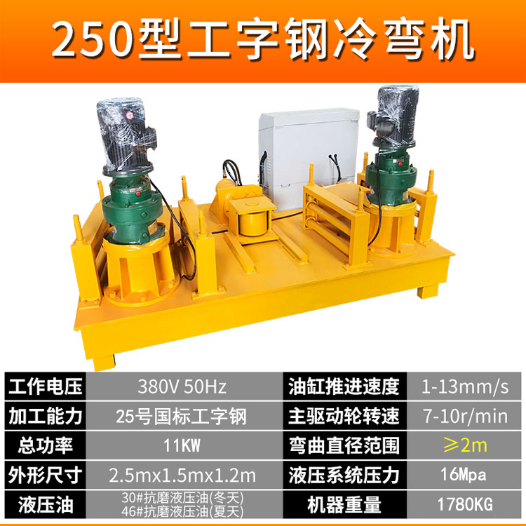 工字钢冷弯机厂家供应250型液压工字钢顶弯机 引水隧洞冷弯机 工字钢冷弯机弯弧机介绍 支护工字钢拱架加工工字钢冷弯机被中铁工程局产品,WGJ系列冷弯机是我厂自主研制的一种多功能型钢冷弯设备,国内。工字钢冷弯机设备由主电机、减速器、滚轮、油泵电机、齿轮油泵、溢流阀、电磁换向阀、作业油缸、顶轮及油箱等部件组成。构成简单,使用方便。问题很少,是我公司一款成熟技术产品。 主要用于工字钢、H型钢等型钢的拱形卷圆、变径、定角弯曲。采用数显编码器编程,使液压操纵定位准确,所弯型钢一次自动成型,效率高、操作方便。 工字钢冷弯机厂家供应250型液压工字钢顶弯机 引水隧洞冷弯机。