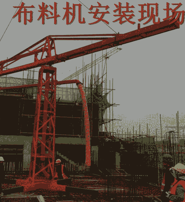 机吊到适宜工作面上,落到工作面前,将伸缩腿拉出处于锁置。3)、平稳放下布料机,并调整在一个水平面上,(用木板调整)