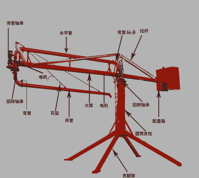 0.5旋转方式手动旋转角度360°管道直径125整机质量1300kg工作配重900kg手动式混凝土布料机(布料杆)使用说明书混凝土布