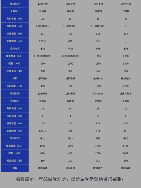 料机是泵送混凝土的末端设备,其作用是将泵压来的混凝土通过管道送到要浇筑构件的模板内。分类:手动布料机分为12米,15米,