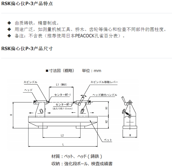 日本RSK偏心仪偏摆仪 偏心仪检查器 P-3偏心检测仪 563-P3L原装正品