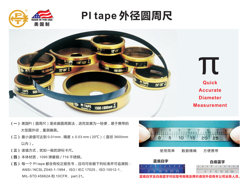 美国外径圆周尺 PI-TAPE派尺 PM03SS范围50-300mm 周长测量尺
