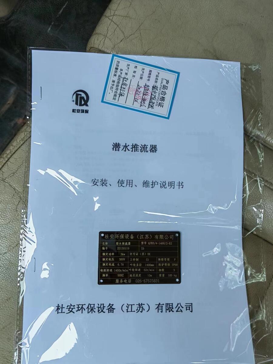 江苏杜安环保QJB3/4-1400/2-68潜水推流器带现场控制箱