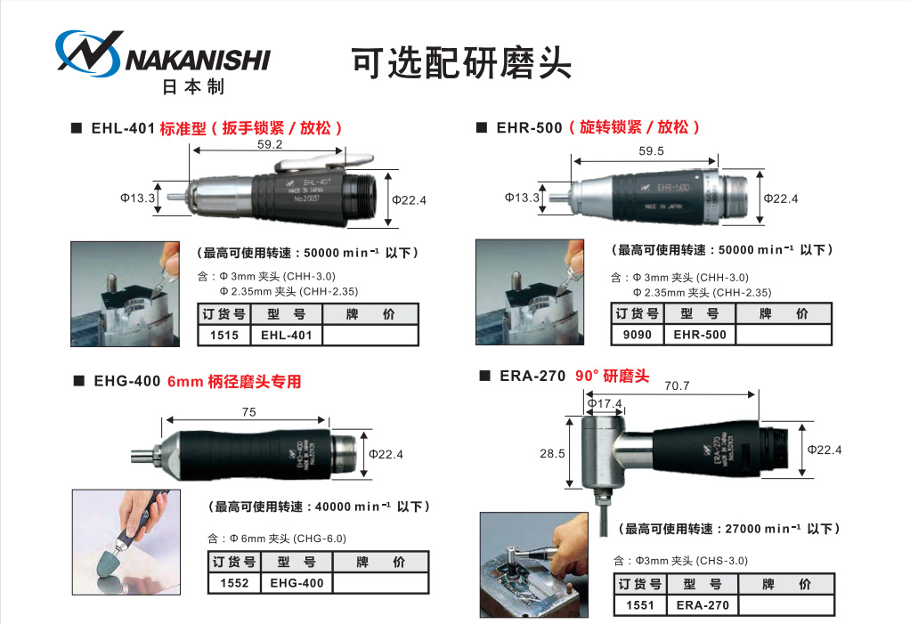 日本NAKANISHI 直角研磨头 ERA-270弯头打磨机 抛光机研磨机原装正品