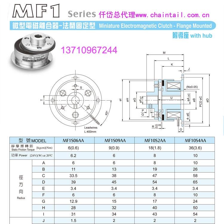 以上是关于【微小型电磁离合器MF1S06AA】产品的相关介绍,欢迎咨询仟岱总代理余先生13710967244,参考网址http://www.gzchaintail.com或http://www.chaintail.com.cn。