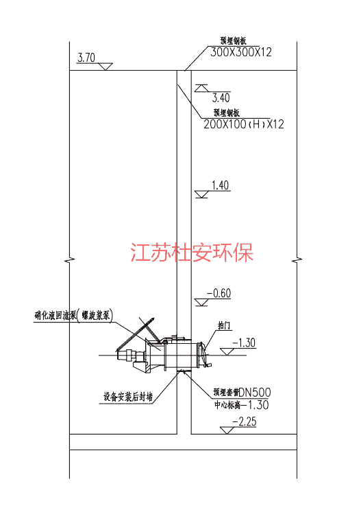 每台混合液回流泵应配备 AISI304 不锈钢导向杆和 AISI304 不锈钢提升绳,使之自由升降及转向。
