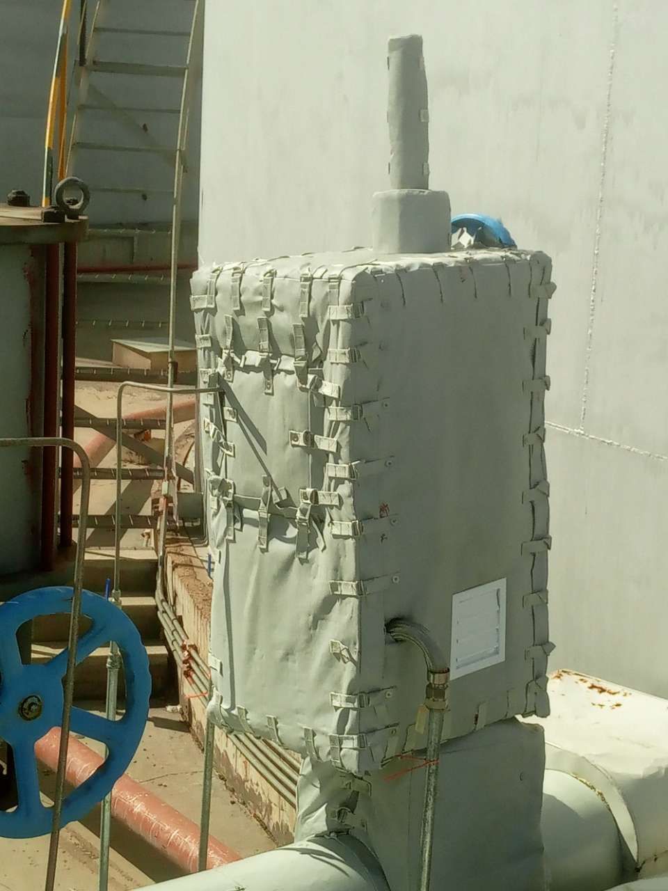 云帆慧柔性防火罩特为所需保护的零件、执行器、阀门、储槽和管道的形状而专门设计和量身定做。可为控制器、阀杆、钢框架和按钮建立凹进处和孔洞;防火罩为特殊定制,可根据客户需求在所需位置开设穿过电源线的通孔,且在安装前可随时进行修改。防火罩外观可采用不同颜色织物制作,以便在系统不同区域内区分自动操作和方便操作人员在紧急状况下操作。