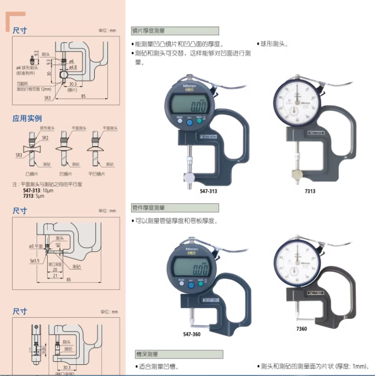 三丰数显测厚规 547-313厚度计 Mitutoyo 数显厚度表 可换测砧测厚规