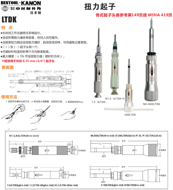 日本KANON中村扭力起子 6LTDK扭力螺丝刀 扭力批原装正品 KANON代理